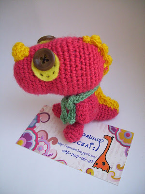 Нещодавно мені подарували цілий два великих кульки різноманітних гудзиків! Це просто такий царський подаруночок, я навіть спочатку подумала, що було пограбовано бабцю якусь чи музей гудзиків - настільки там є старі та цікаві екземпляри. Вирішила віддячити людину. Постало питання чим саме? Найбільше переживаю, що людина не дуже любить ххенд-мейд речі, і навряд чи оцінить "рукодільну" роботу. Тим паче. що це мужчина... Зв'язала маленького Дракошу (7 см, це повтор) та спакувала його у картонну коробочку. Зрештою... навіть, якщо він не дуже полюбляє такі милі звірятка, впевнена, в нього є кому це подарувати.